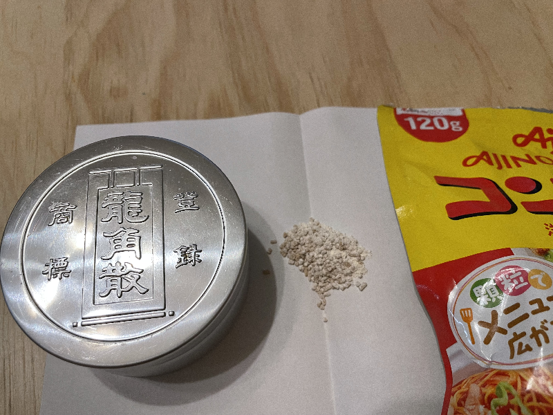 このコンソメ顆粒も粒の大きさが龍角散ダイレクトのそれと近いんだよな、もしかすると顆粒にする製法って確立されていてみんなその作り方で作ってるのかもしれない。