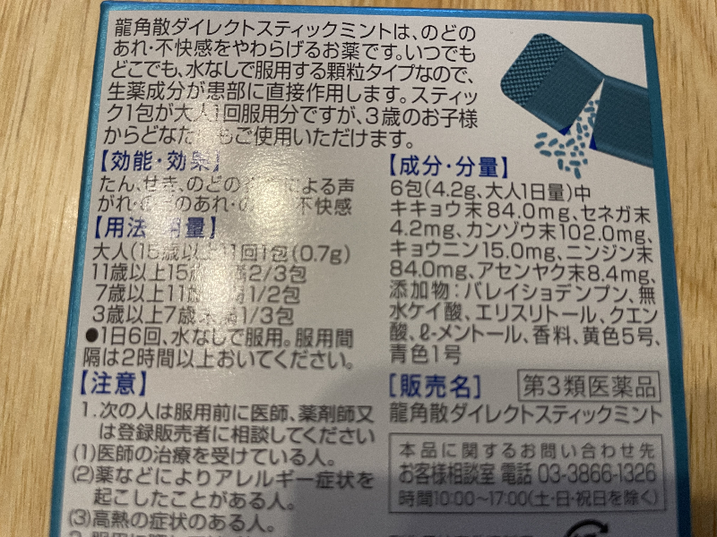 そんな理由からかみさんは龍角散は龍角散でも、龍角散ダイレクトのほうを服用している。