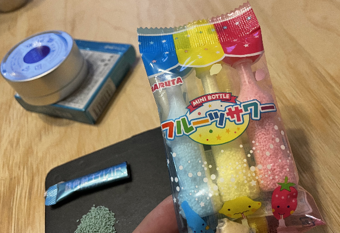 昭和の時代、粉というか小さい粒というかそんな形状のラムネっぽい駄菓子があった気がする。なんかストローで吸うんじゃなかったっけ?そんな記憶がある。