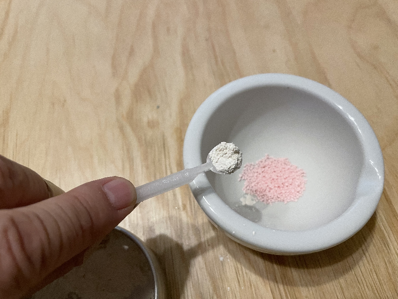 ちょっと白っぽくなってしまうのはまぁ仕方ないか。と、期待に胸膨らませて調合していると、かみさんが